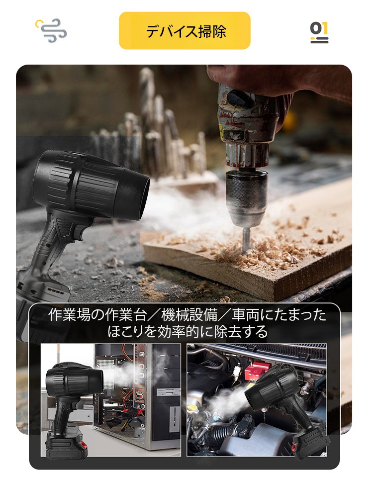 コードレス設計で持ち運び簡単なターボブロワー